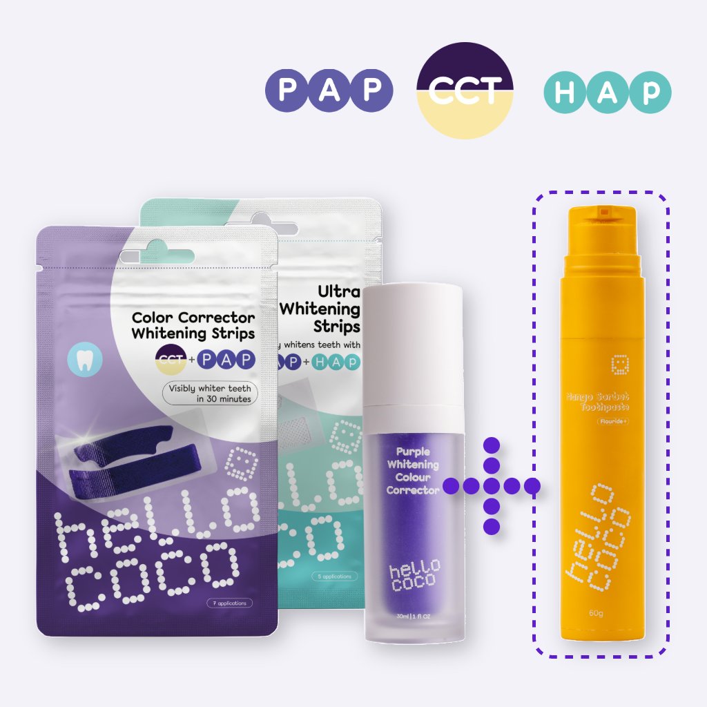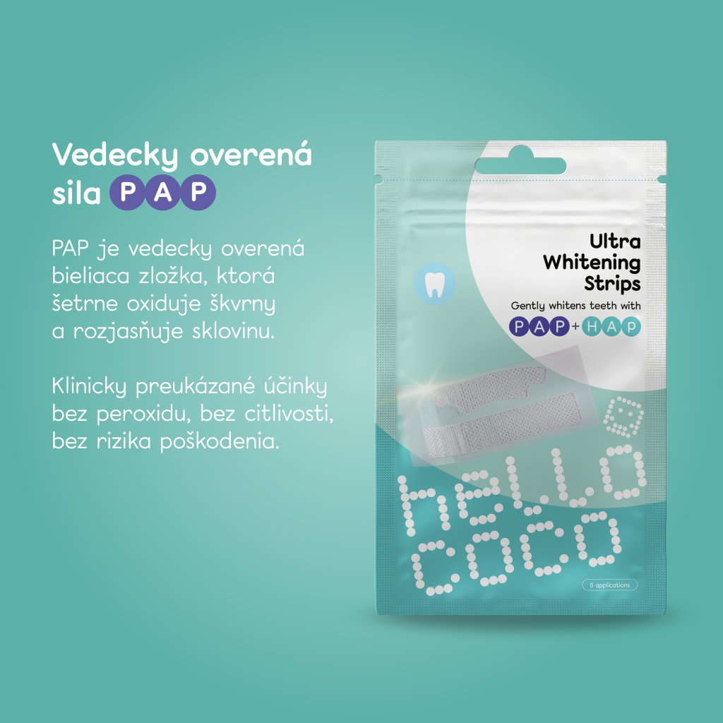 Bieliace pásiky s PAP technológiou zabezpečujú viditeľné zosvetlenie zubov, korektorová pasta rozjasňuje úsmev pomocou technológie korekcie farieb a CCT pásiky prinášajú okamžitý optický efekt spolu s reálnym bielením. Výsledkom je efektívne, šetrné a zároveň najpohodlnejšie bielenie zubov z našej ponuky.