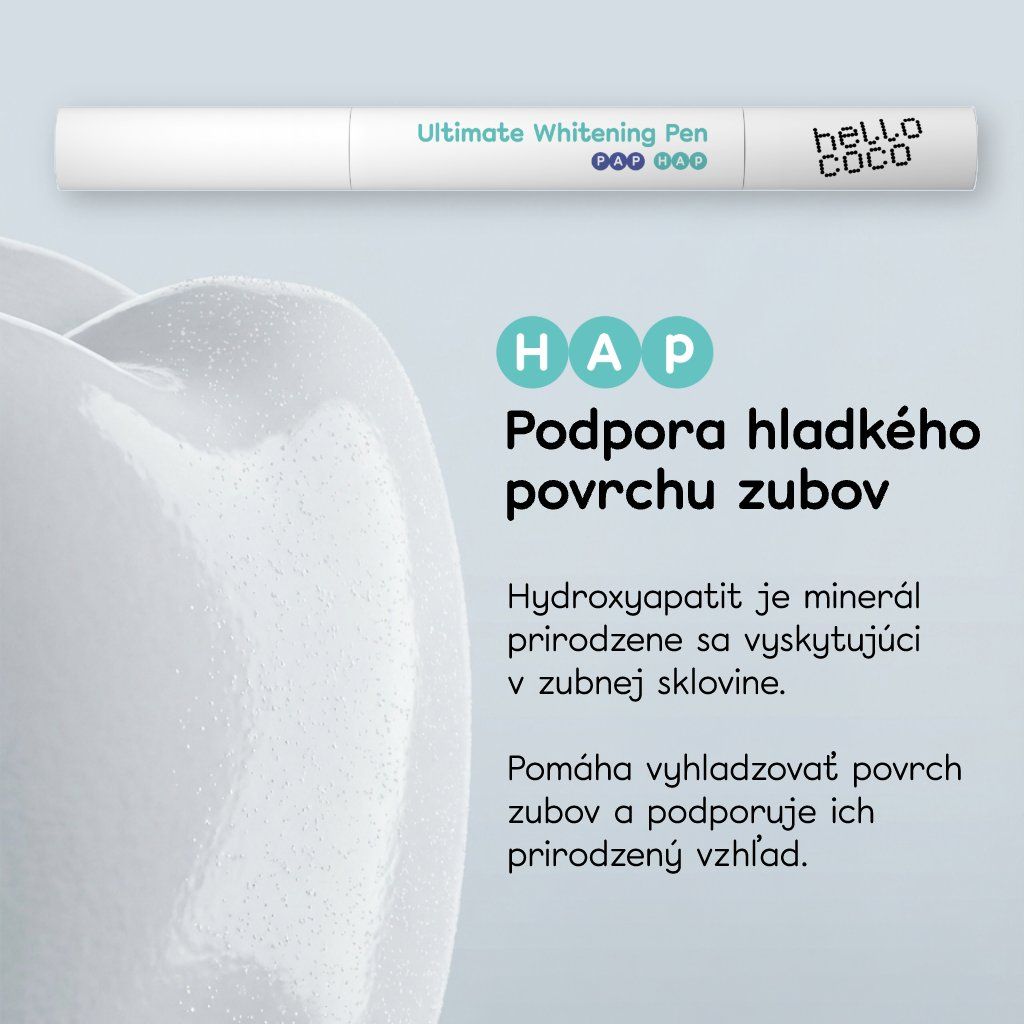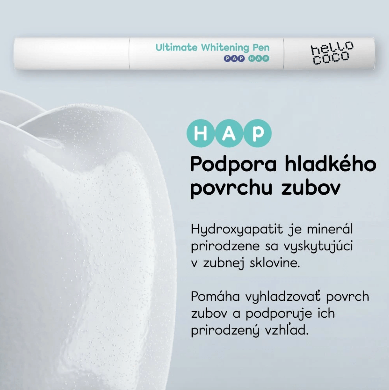 Hydroxyapatit (HAp) je vzácny minerál, ktorý sa prirodzene vyskytuje vo vašej zubnej sklovine. Formula PAP obsahuje jeho syntetickú verziu ktorá, pomáha vyhladovať mikrotrhliny na zuboch, v ktorých sa zachytáva povlak. Zároveň vytvára ochrannú vrstvu, pomocou ktorej sú zuby dolnejšie voči zubnému kazu.