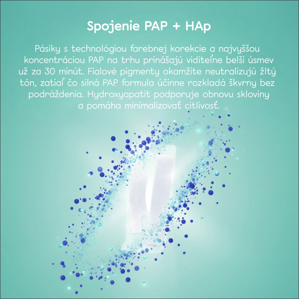 Zároveň obsahujú hydroxyapatit , ktorý pomáha posilniť sklovinu a podporuje jej prirodzenú regeneráciu. Na základe nášho pokročilého PAP bieliaceho vzorca sme navrhli tieto pásiky ako náš doposiaľ najpohodlnejší a najšetrnejší spôsob bielenia, bez podráždenia ďasien a bez citlivosti zubov.