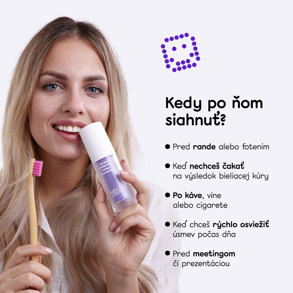 Colour Corrector je produkt na korekciu farby a nie je navrhnutý tak, aby nahradil vašu každodennú zubnú rutinu. Odporúčame používať Corrector ráno po vyčistení zubou vašou bežnou zubnou pastou.