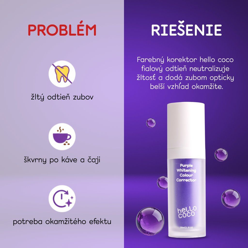 Môžete použiť Colour Corrector ako prvý krok, alebo aj ako posledný krok k žiarivejšiemu úsmevu. Colour Corrector je určený pre ľudí, ktorí chcú svoje zuby po bielení ďalej rozjasniť, alebo už majú veľmi biely odtieň zubov a nepotrebujú kompletné ošetrenie zo súpravy LED na bielenie zubov. Oxidácia škvŕn na zuboch pomocou PAP zvyšuje svetlosť a znižuje sýtosť žltých škvŕn, zatiaľ čo Colour Corrector vyrovnáva teplé a studené tóny zubov (odtieň) vo vašich zuboch a odhaľuje žiarivejší odtieň bielej.