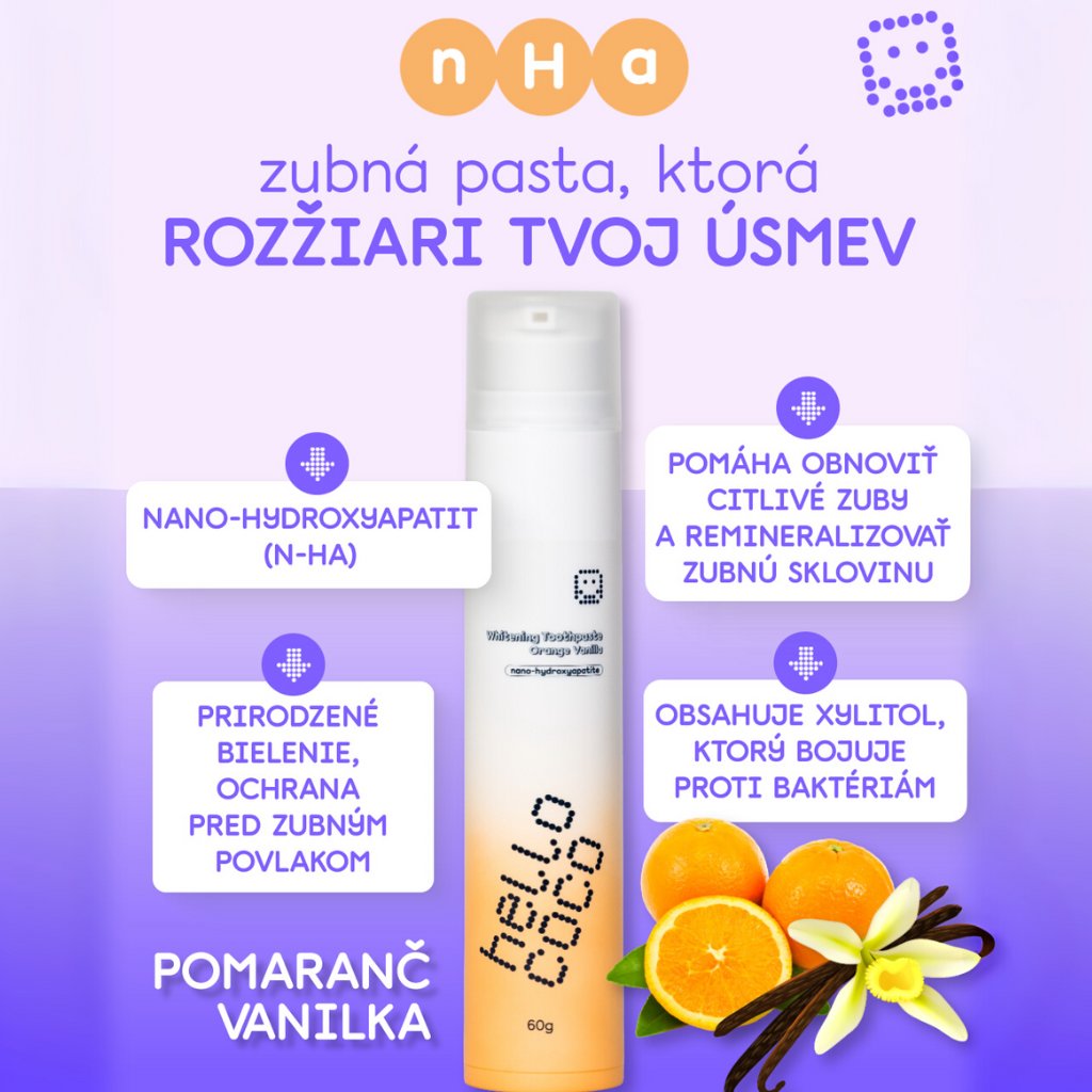 nano-hydroxyapatit (n-Ha), revolučný pokrok v zubnej starostlivosti. Hydroxyapatit je hlavná zložka zubov a kostí, ktorá pomáha remineralizovať oslabenú sklovinu a znižuje citlivosť zubov. Zároveň vyhladzuje povrch zubov, vďaka čomu vyzerajú prirodzene belšie.